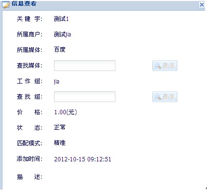 3. 点击“查看”,可以看到关键字的详细信息。如下图: