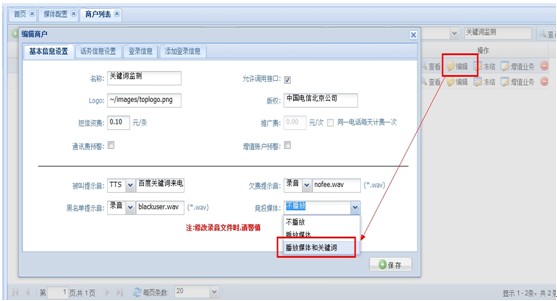 6.设置接线员提示音,商户——》基本信息——》编辑——》竞投媒体。如图